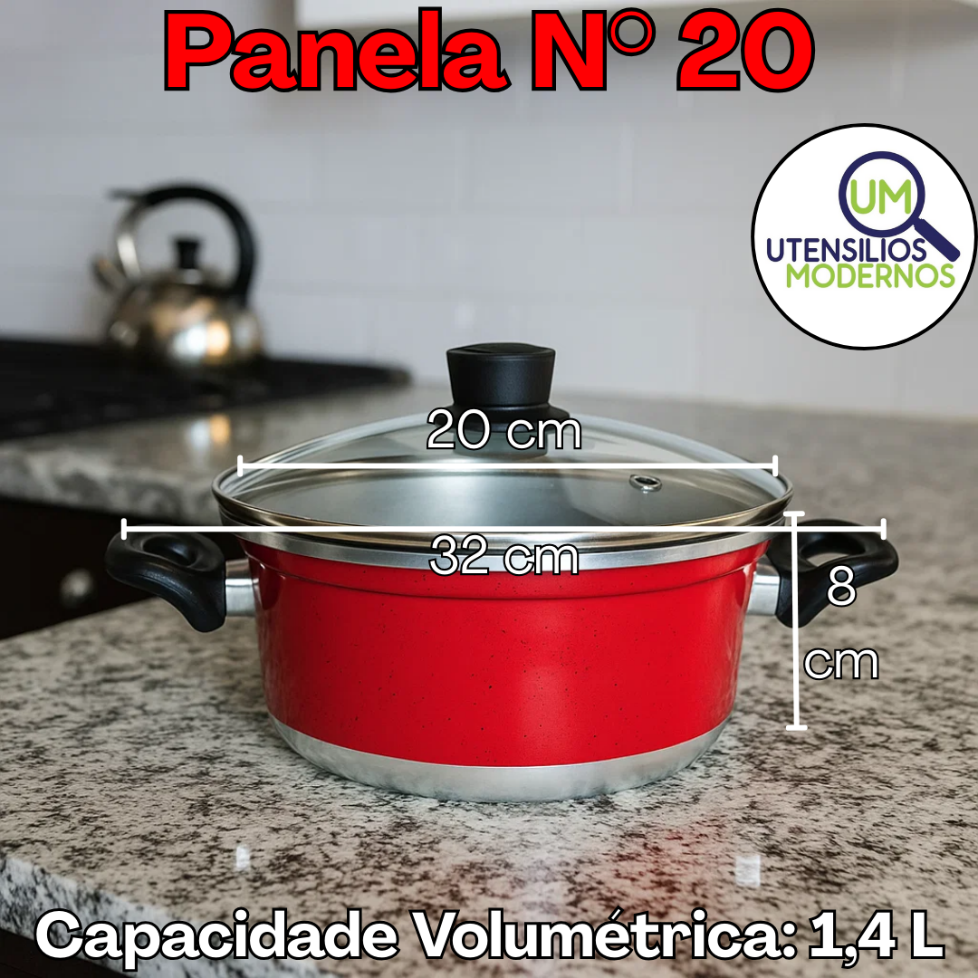1 - Panela 20: Diâmetro de 20 cm - Altura 8 cm Capacidade 1,4 litros