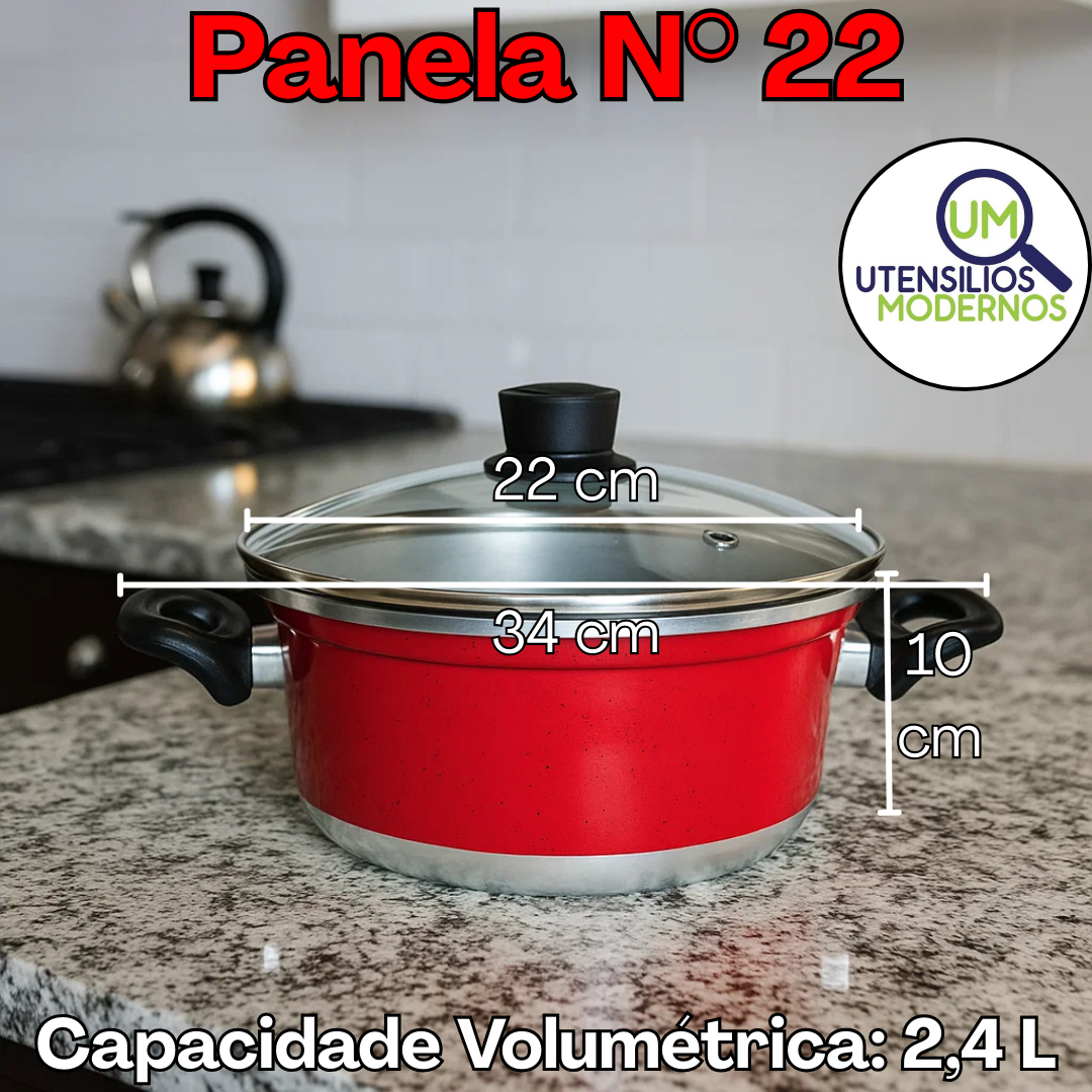 1 - Panela 22: Diâmetro de 22 cm - Altura 10 cm Capacidade 2,4 litros